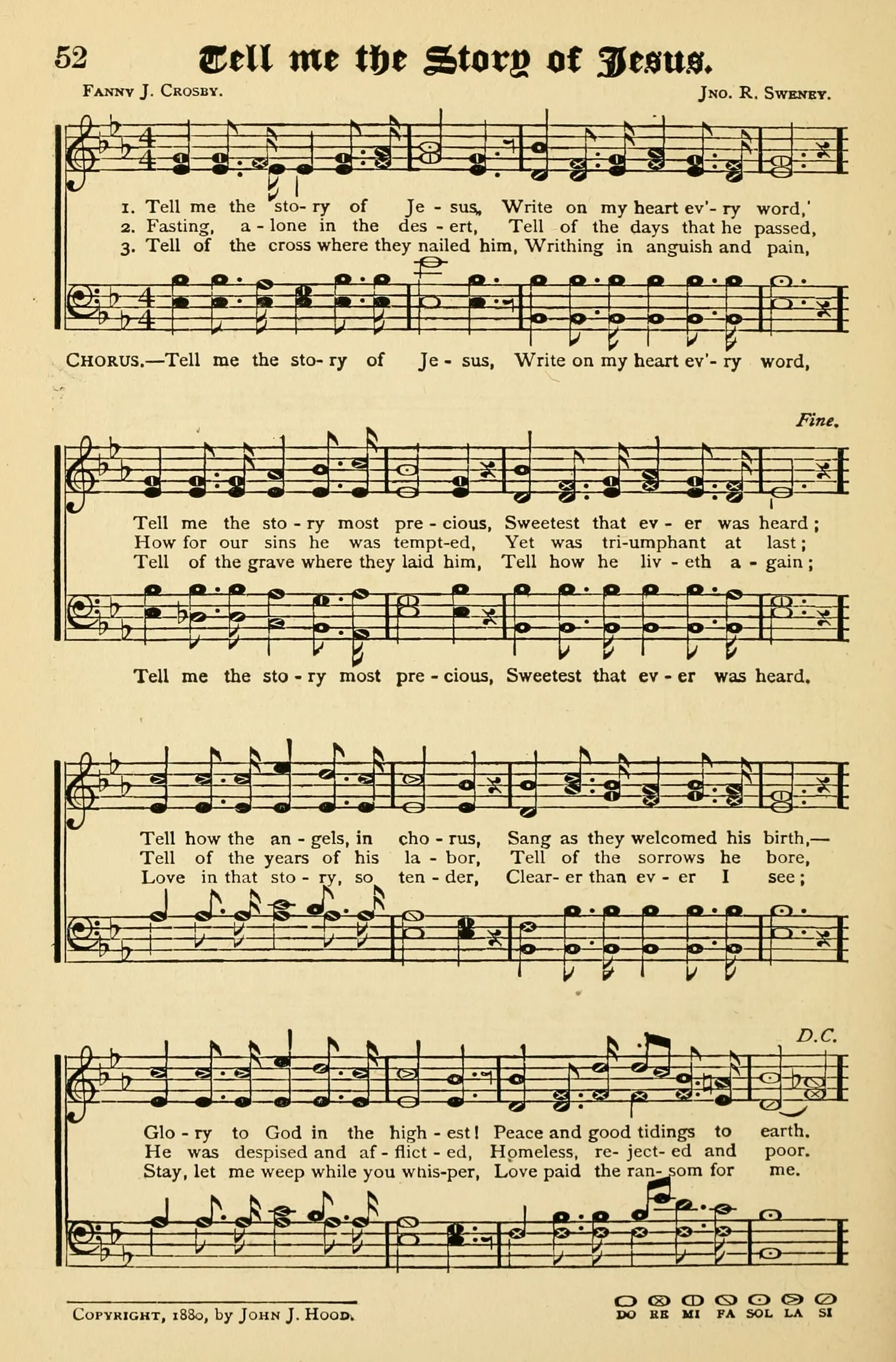 Original publishing from The Quiver of Sacred Song 1880 (https://images.squarespace-cdn.com/content/v1/5b11858da2772cf01402ee6e/1574282893769-HWJ8VNO635I6MT3W8RXX/TellMetheStory-Quiver1880.jpg?format=1500w) (image provided by The Hymnology Archive)